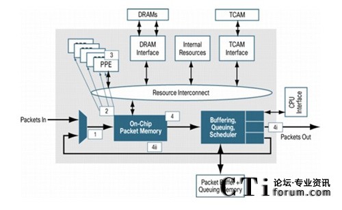传统的网络处理器为了优化报文分类和处理速度并节省内存访问带宽,通常仅访问数据包头以获得较高的转发吞吐量,当这类处理器进行深度数据包检测(DPI),防火墙,网络地址转换(NAT),Netflow等复杂操作时,将会对性能造成不良影响。