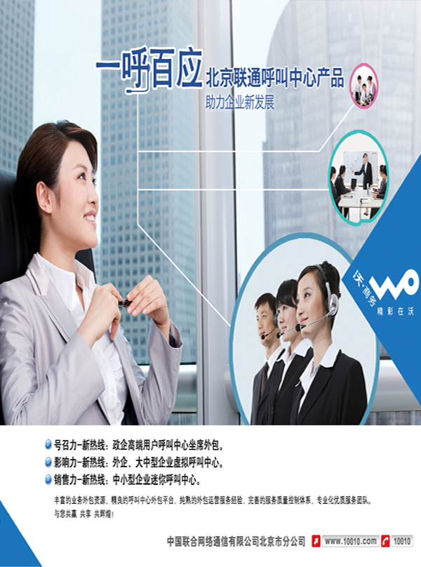 北京联通外包呼叫中心的前身为奥运呼叫中心,2008年奥运会结束,先后承担了奥运会、残奥会赛会志愿者招募咨询、奥运会、残奥会票务咨询、奥运特许商品质询及“好运北京测试赛”等一系列与奥运会、残奥会紧密相关的服务工作。
