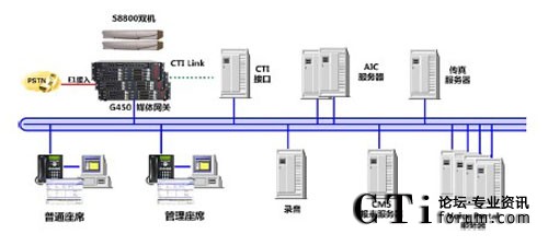 华胜天成在分析客户需求的基础上,最终选用了Avaya S8800用户交换机,这是最新一代多业务程控电话交换系统,整体设计采用了目前业界最新的技术成果,既充分考虑到了对传统电话交换技术的支持,又充分采用了最新的标准和技术。CTI中间件采用Avaya的IC交互中心,座席软件既支既持C/S架构,又支持B/S架构,简体中文和弹屏,及各种业务系统集成。