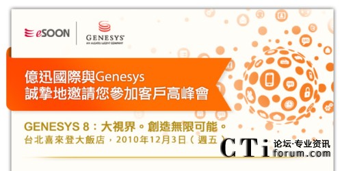 持续优化企业绩效及培养意见领袖,都是协助我们在台湾的用户与其客户有更佳交流往来的重要作法,因此,我们特别筹办了‘客户高峰会’,全面邀集来自Genesys新加坡、香港及中国的专家和同侪与您面对面,进行互动的知识分享与意见交换。
