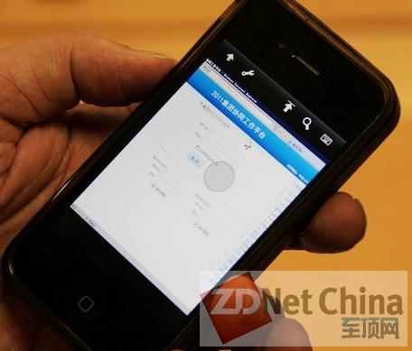 图:阮闯用自己的iPhone手机演示登录集团的信息化平台非常方便。