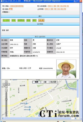 图:居家养老类GPS呼叫中心座席弹屏界面图示