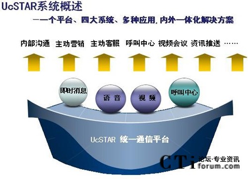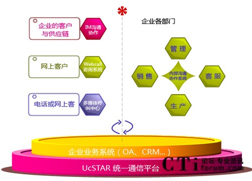 UcSTAR统一通信平台是为企业提供从内部沟通、协作与外部服务于一体的高效通信通道,并与企业的业务系统融合,实现统一通讯、统一登录、统一消息、统一门户的统一工作平台。
