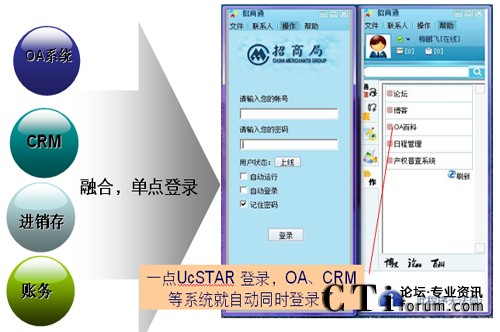 UcSTAR与第三方系统可以实现三种不同深度的整合:单点登录、统一消息、流程链接。
