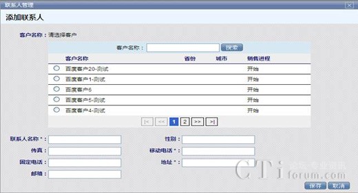 联系人管理与客户管理操作方法大致相同,功能相当于客户管理下客户资料内的添加联系人功能。您可以按客户名称为搜索条件选择所要添加联系人的目标客户。