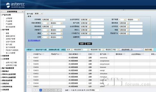 上级可以通过客户分配这个模块对客户进行具体化、细致化,分区域分部门的分配。