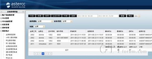 asterCC自动生成的各种数据报表,让您能很快的从成千上万的通话中分析到关键的信息。这样销售业绩及客服质量的情况便清晰可见。根据丰富的数据报表,给决策者做战略性市场定位提供有力的数据参考,对业务的开展也起到了促进作用,同时也便于进行员工的绩效考核。