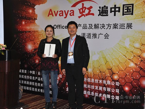 前面环节:主办方华贸联合总经理柳成林做了“欢迎致词和公司介绍”,娓娓道来讲述了华贸联合的发展。AVAYA SME中国区区域经理何少庆生动讲解了 “SME市场和渠道介绍”,对IPO整个市场做了深入的分析。华贸联合IPO工程师韩璐、AVAYA大机售前经理刘佳和渠道经理孟琪分别介绍了IPO以及大机的产品和渠道政策。