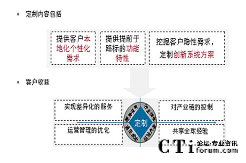 可定制服务主要体现在三个层面,一个是定制化服务,通过全国10多个本地定制开发中心对客户提供贴身二次开发服务,支撑客户更精细运营其客服系统,另一个是定制化路标,定制化创新系统方案,即通过华为MKT、行销、开发部门对客户价值需求的深度分析,将客户需求去粗存精、去伪存真、由表及里、由此及彼“定制提炼”出来,成为我们产品和方案的路标。