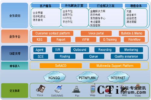 华为多媒体联络中心解决方案标准版采用的是基于华为NGN架构的下一代多媒体接入设备UAP3300,宽窄带一体化设计,可接入PSTN/PLMN、NGN/3G网络,符合长期演进要求。单台可支持240座席,在6U的高度内内置宽窄带中继接入和录音、放音、传真等媒体资源处理能力,无需外置媒体服务器和中继网关,并支持TTS和ASR功能。