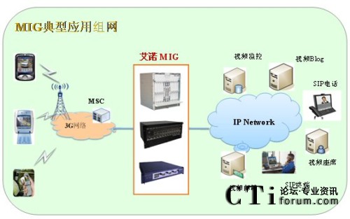 艾诺通信的媒体互通网关MIG(Multimedia Interwork Gateway)应用于不同网络之间,提供网络间信令互通和媒体互通功能,使多媒体业务能在异构网络中传递,支持移动设备、PC设备和IP设备之间任意格式视/音频转码互通。