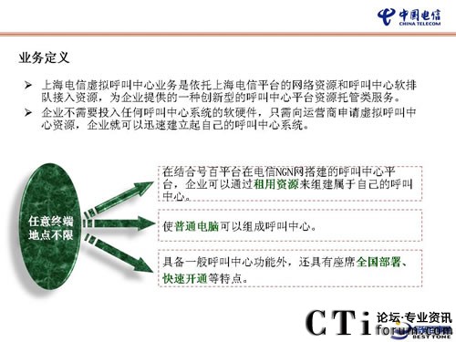 上海电信云呼叫中心业务是依托中国电信平台的网络资源和呼叫中心软排队接入资源,为企业提供的一种创新型的呼叫中心平台资源托管类服务。 咨询热线:021-55358888,网址: