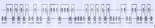 模拟信号的形成比较简单、直观,但在传输过程中容易受到外界干扰发生畸变,从而降低通信质量;数字通信是与模拟通信不同的另一种通信方式。数字信号的传输、记录、处理都采用数字(“0”和“1”)信号。由于数字信号抗干扰强、生产的畸变小,也容易消除,因而可以大大提高通信质量。使用PCM(Pulse-Code Modulation)调制后的采样声波如下所示: