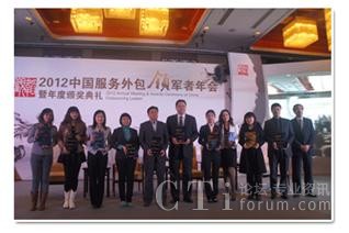 CTI论坛(ctiforum)4月6日消息(记者 欧阳): 日前,由中国外包网和鼎韬服务外包研究院联合举办的“2012年中国服务外包领军者年会—暨Chinasourcing-中国服务外包产业最佳实践评选颁奖典礼”在天津滨海新区隆重召开。