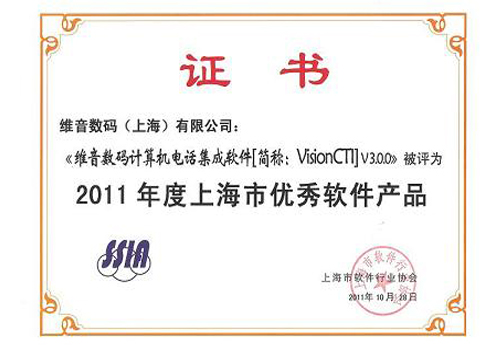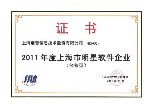 维音再次荣获“2011年度上海市明星软件企业”