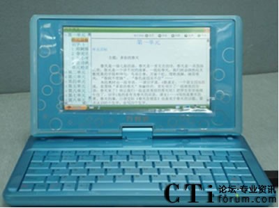 CTI论坛(ctiforum)8月3日消息(记者 杨佳林):现在点读笔、电子书、学生电脑等专门针对学生的教育电子产品持续热销。尤其是学生电脑,它已经成为时下大人送给孩子们最好的节假日礼物,它寓教于乐,深受家长、老师和同学们的青睐。暑假过半,相信很多独守在家里的孩子们,手里正捧着大人们送给他们的学生电脑在研究。