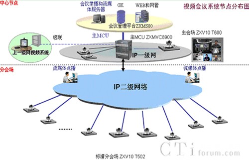 为此,中兴通讯选择了ZXMVC8900基于电信级交换机架构的MCU,而会场终端根据乐山地税局的要求,我们分别采用ZXV10 T600 高清视频终端,ZXV10 T502标清终端。全兼容智能视讯服务器ZXMVC8900采用电信交换机架构设计,全面支持ITU-T H.323、H.320协议,可通过不同网络(IP、ISDN、DDN、SDH、ATM、卫星等)接入用户终端,并组织召开视频会议,具有全兼容各种网络、支持DVD级高清会议、支持H.264编解码协议、H.460防火墙穿越、H.235加密、H.239双视频流、T.140短消息横幅、终端主叫呼集等先进技术,最高支持8M带宽和4CIF图像分辨率,为用户提供DVD级的高清晰会议体验。采用单插板设计,在将来需求增加的时候可以通过增加板卡最大扩展至192路,充分保护用户投资。ZXV10 T600是中兴通讯推出的新一代分体式双模高清视频会议终端,支持1080P,720P高清编解码和8M会议带宽;支持H.320和H.323双协议、蓝牙技术、H.460防火墙穿越、H.235加密、H.239双视频流、T.140短消息横幅、终端主叫呼集等最新技术。