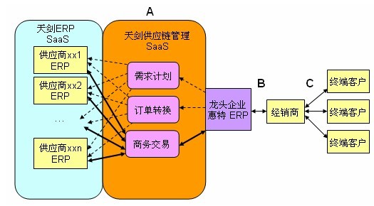 平台为供应商提供SaaS进销存管理服务,销售订单管理服务,甚至应收款服务;如果顺着其业务流程,可向物流服务,网上银行服务伸展,最终形成企业的完整业务服务,即多平台配套服务。