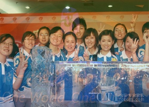 一个个闪亮的数字时时激起热烈的掌声,在掌声中,北京奥组委会宣布 “运行保障突出贡献团队奖”得主,当我们的名字响起在礼堂的上空,看着客服宝贝兴奋的将我们的旗帜高高扬起,热泪盈眶。