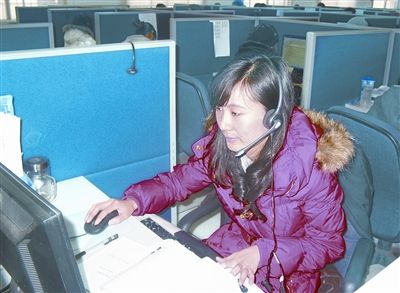 图:1月12日,国寿财险电子营销中心工作人员在接听电话。