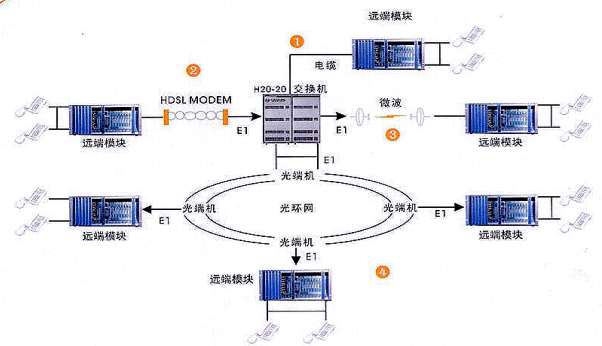 体系特点:利用廉价的HDSL设备,可以直接使用铜线长距离传输E1信号,可以实现1:64倍的扩容、线缆改造、提高线路利用率,并能够简化维护、方便管理。