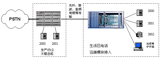 体系特点:新增的住宅小区和分支机构电话系统不需增加一台交换机或者对交换机进行大的改造,只需在该小区和分支机构增加DAS128的远端模块。该电话系统功能与本机完全一致并可由交换机统一管理。节约投资费用、并进一步减少维护人力资源和管理费用。远端模块与交换机之间使用光缆连接,也免除了维护、检查大捆通信电缆线的烦恼。所有分支机构都可共享总机全部资源。