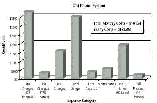 首先,原系统非常昂贵。Clark说:“租用Centrex线路的成本是每条线路每月23美元,而且无论使用与否,都必须支付这笔费用。我们于1993年,即联邦电信法出台之前三年,与本地电信商签署了为期9年的合同,因此,在随后几年里,费率对我们相当不利。不仅如此,添加、移动和改动电话也非常昂贵,每年的花费在7,000美元到10,000美元之间。”