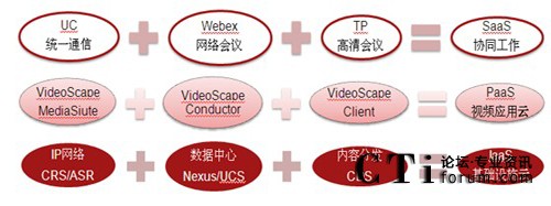 思科在云计算中的定位,是以网络和计算为核心的IaaS,以视频应用为核心的PaaS云,以协同工作为核心的SaaS云,集中在IP NGN、协同工作、数据中心/Cloud、架构驱动和视频等方面,这些组成了思科云计算的整体解决方案。