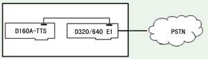 下面以深圳东进的D160A-TTS产品为例简单介绍TTS语音卡的应用。在数字中继线路上(ISDN-PRI信令,1号信令,7号信令)的硬件构成如右图。