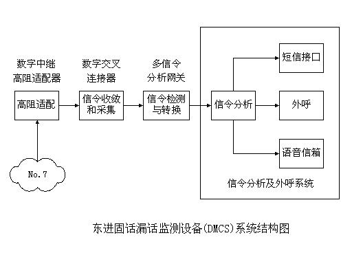 东进漏话监测设备(DMCS)在技术架构上摒弃了传统漏话业务中的呼叫转移模式,将遇忙和久呼不应信号通过LSTP中旁路出来,而不是从实际的交换网中提取,使业务的系统架构具有良好的灵活性和方便性,为业务的开发提供了灵活的手段。