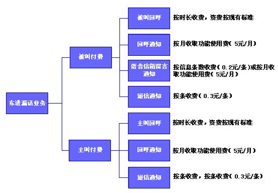 东进固话漏话业务可根据业务的漏话提醒方式不同分别计费或组合计费。