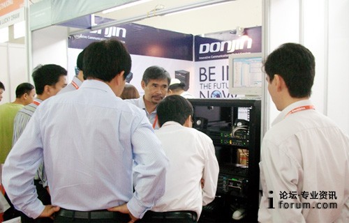 该展得到越南电讯传播部、商业部等多个政府部门鼎力支持,是越南邮电集团公司VNPT与雅式展览有限公司联合在越主办的大型专业展览。东进技术在此次展会上主要展示基于Keygoe多媒体交换技术的keygoe-VoIP平台。随着VoIP业务在海外内的广泛应用,众多应用项目中对支持VoIP的功能需求十分迫切。东进Keygoe多媒体交换技术不仅支持纯VoIP和TDM应用,同时也支持两者的混合使用,尤其是Keygoe-VoIP功能能够在后期不变更硬件配置的情况下随意添加,使得客户免去了后顾之忧,这点备受客户的亲睐。在展会现场,很多参观者对keygoe-VoIP平台的功能特性都表现出浓厚的兴趣,并表示将首先考虑将Keygoe应用到其新的项目中去。