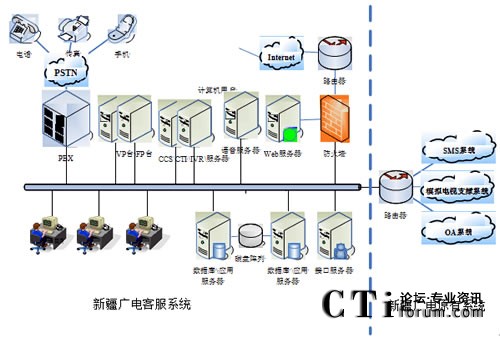 建立分散部署、集中控制型的面向新疆广电全疆所有用户的综合性服务接入平台。在乌鲁木齐采用数字中继的本地接入方式。各分公司从当地接入模拟电话线,并利用各地的远端模块集中话务到系统中心进行交换和处理。在各分公司根据业务需求配置本地座席,受理分公司本地的客户服务工作。