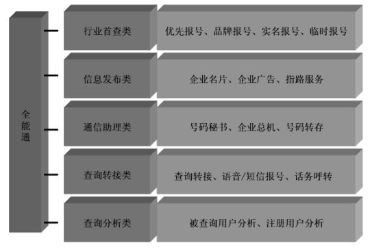 面向个人用户提供签约企业的行业推荐、品牌名称、企业实名、企业临时号码等查询方式,提高签约企业的查询率,使企业获得更多的商机。包括以下五类子业务: