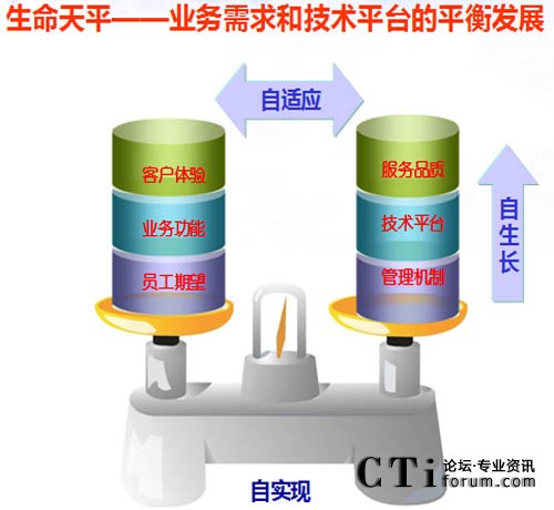 “生命天平”所体现的联络中心运营管理是一个动态持续的过程,客户体验、业务功能和员工期望是不断变化的,这就要求平台要具有生命力,要不断满足客户和业务新的需求,能够主动的根据客户体验提升服务品质,跟随业务功能变化提升技术平台,结合员工期望,完善和改进管理机制。使联络中心始终处于自生长、自适应、自实现的平衡调节过程中。