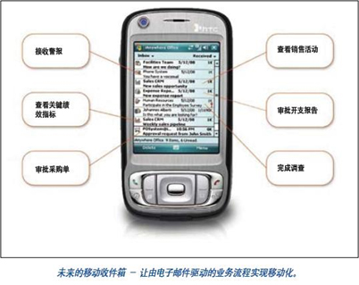 目前,无线电子邮件已经成为最受移动设备用户欢迎的应用:它是一种简单而高效的方法,工作人员可以随时随地保持联系,进行沟通。然而,要让工作人员在户外保持像使用台式计算机那样的效率,无线电子邮件仅仅迈出了第一步。全天候的移动执行力要求即使员工不在办公室,也必须保证业务的连续性。由电子邮件驱动的业务流程,例如采购单、销售订单审批或租用申请都需要迅捷的行动,但目前这些流程只能借助台式或便携式计算机来完成。