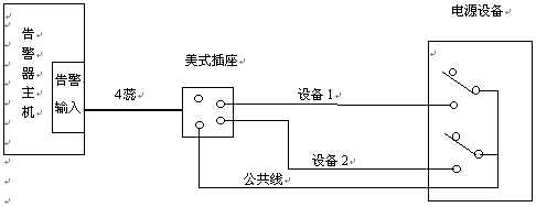 电源、UPS设备的告警信号从告警器后面板告警输入接口输入,通过四蕊电话线相连。一台主机可收集五种告警。连接距离可达5公里。