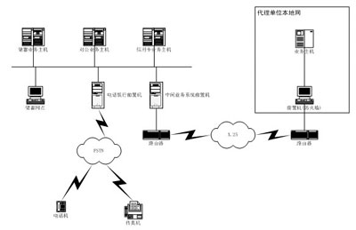 根据业务需求,电话银行前置机以 PC服务器(联想万全服务器)为硬件平台,通过PSTN网接电话机、传真机以及其他查询终端,另一端接电话银行前置机中的语音卡。
