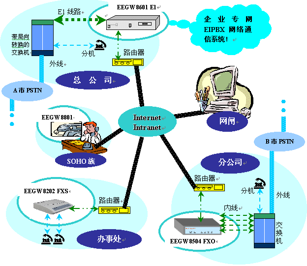 解决方案一:企业专网EIPBX网络通信系统