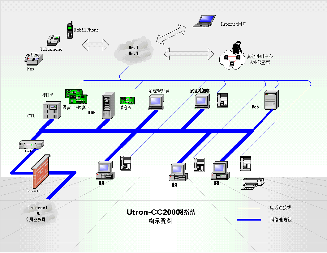 。。Utron-CC2000呼叫中心平台是一个集语音技术、通信技术、计算机网络、数据库技术于一体,基于分布式对象提供的全方位综合信息,支持传统电话、传真、电子邮件、Web等多种媒体接入方式的呼叫智能响应中心。