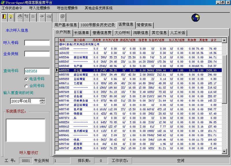 。。Utron-CC2000呼叫中心系统以其强大和灵活便捷的功能,优良的性能价格比,能够满足日益发展的电信企业客户服务的多方面要求,是为电信用户提供高效率、全方位的周到服务,开展增值业务强有力的工具。