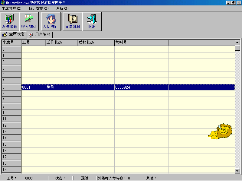 。。座席应答时,在当前座席座席端上显示系统分配的客户队列和在线的客户信息。同时,通过客户管理功能,还可以对系统存储的客户信息进行维护和管理。