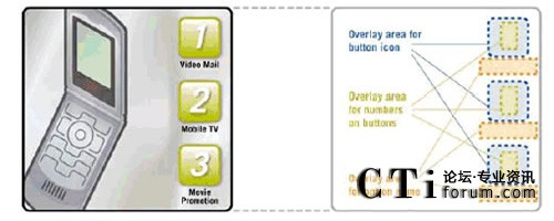 互作用提出了更进一步的挑战。能够使用户访问多个 TV 频道以及获得其他服务的视频门户,是一个很好的研究实例。视 频门户显示了基于每个用户活动、访问权限、服务描述等的服务菜单。一般来说,菜单是有限列表,用户通过在手持终端 按下相应的键来进行选择 (图2.通过示意图说明了动态菜单的映射方法)。为了创建菜单,应用程序控制了基础架构,而该 基础架构动态地生成了有限列表,并在当前的视频流顶端显示为一个静态覆盖图。相同技术可用于显示基于用户活动或位 置进行品牌和广告宣传的 logo 或文本。