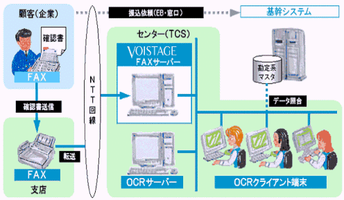 系统结构中心每天收到FAX7~800张。客户数约 1,400家。系统配置是有VOISTAGE(VS-403MC)功能的FAX服务器和OCR