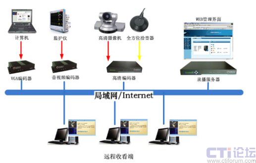 - 由于当前的大多医疗设备,如X光机、CT机均拥有网络接口并支持,由计算机通过网络即可采集医疗设备中的影像,并采用VGA编码器采集计算机中的CR或DR片、CT片、演示文件(PPT、WORD、EXCEL);