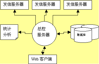 1. 以总控服务器为控制中心,控制一台或多台邮件发送服务器,每台发送服务器管理一个或多个邮件队列。控制中心控制邮件列表,任务列表、作业列表,并与业务数据库通过数据库接口连接,根据条件提取数据,更新邮件发送列表,生成统计分析报告。