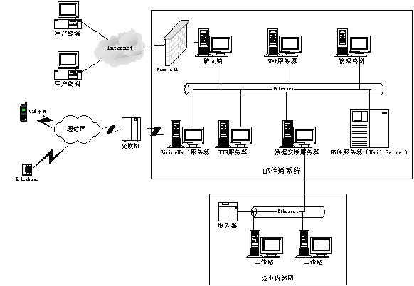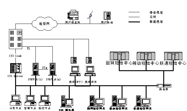 对于不同类型消息呼入、呼出的外围系统设计遵循模块化原则;系统内部消息流满足格式统一、可操作性统一、开发接口统一等特点。在软、硬件选型上,充分考虑系统的稳定性、开放性、经济性,根据不同的系统规模进行详细论证。