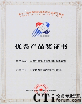 | 科大讯飞获评“中国手机创新软件金品奖十佳” 2009-11-19 |