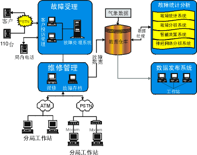 <> 事务处理中心由事务受理工作站、故障处理流程控制工作站、检修信息发布工作站、数据处理服务器、网络服务器等部分组成