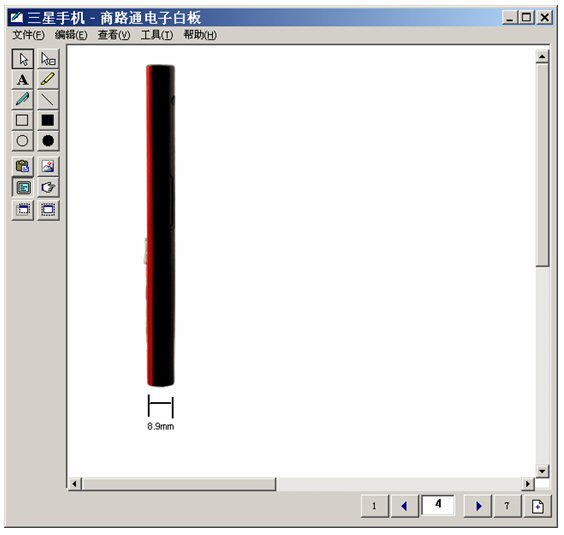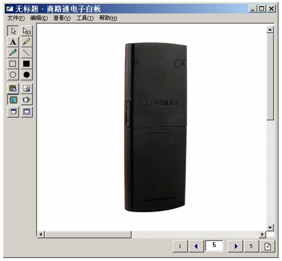 坐席进入富媒体知识库,调出三星手机,启动电子白板,将这个画面推送给客户。
